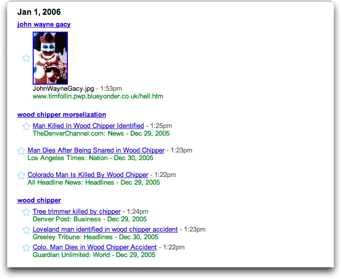 So I let Google save my search history, because I knew I’d forget it, and I wanted to go back and see what I’d looked for. Apparently I’m a really scary motherfucker: